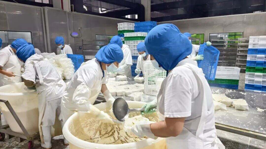 能支撑起巨大订单量与广泛途径布局的,是该企业对质量的极致寻求。“柴火煮浆是风味中心,得精准把控火候和温度:先把锅烧到65摄氏度以上,再用蒸汽将豆浆烧开至95至98摄氏度,小火慢熬15分钟以上,这样豆腐才会带着浓郁锅香气。”杨云峰道出诀窍。柴火慢熬赋予的共同烟火气,调配蛋白率45%以上的苏北大豆,让豆腐干劲十足、香味浑厚,这是其感动商场的要害。