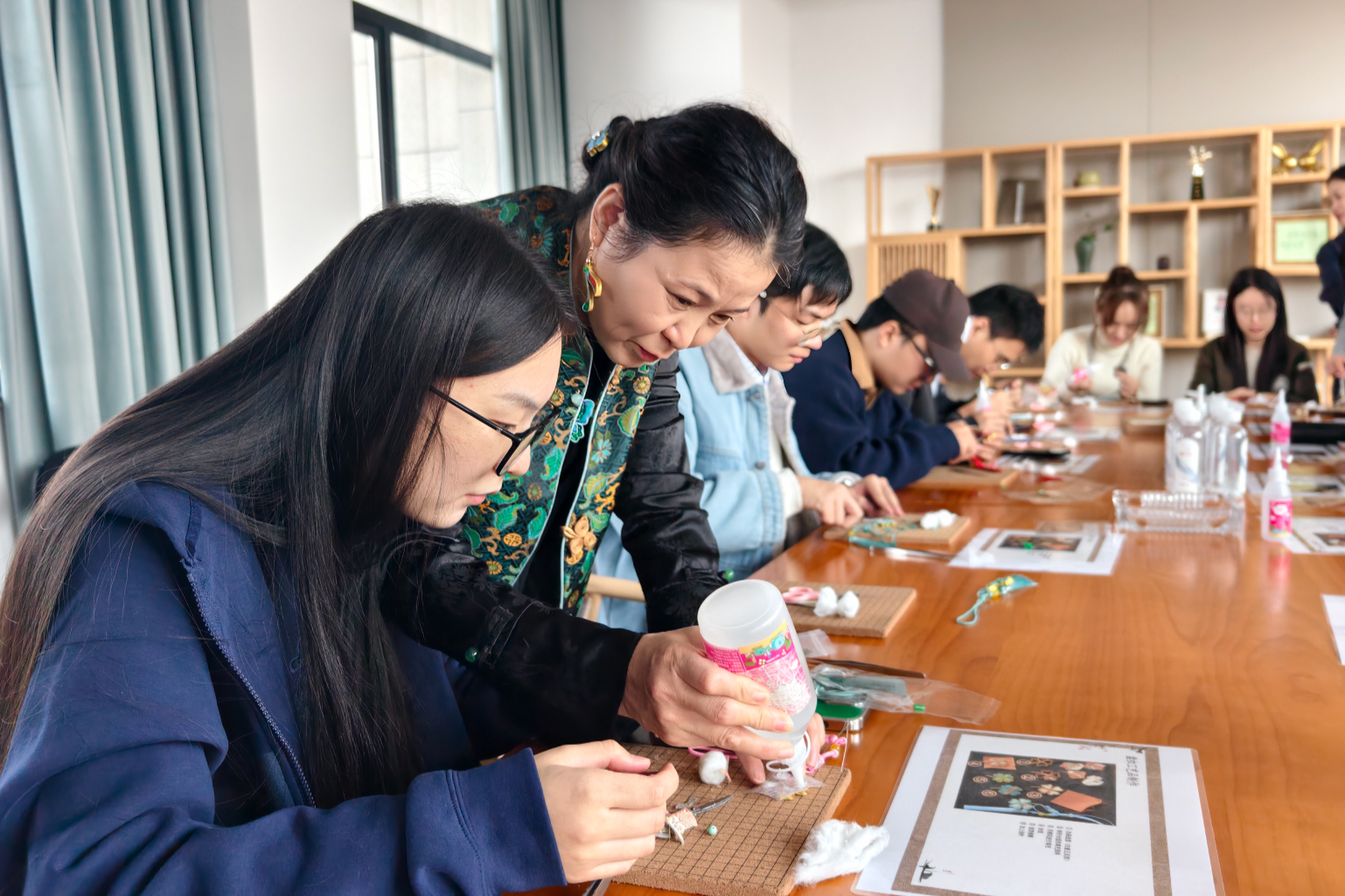 短短30分钟的体会,让针与线的交错成为文明交流的枢纽。而这份东方美学早已走出国门,2024年11月底至2025年1月,咸祥盘扣露脸南非约翰内斯堡大学UJ美术馆“与国际文明对话:‘一带一路’国际手工艺展览”,被南非政府新闻机构SAnews和新华社英文报导,成为“我国手工艺艺术在南非的初次露脸”,现在约请国际化高校学子实地体会,更让这份非遗魅力在双向交流中益发鲜活。