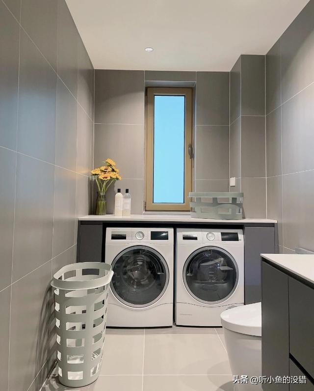 我家是双卫户型,三口之家住,两个淋浴区有点浪费,媳妇想把主卫改成衣帽间,又担心后期添人口不够用,最后折中把主卫淋浴区改成了洗衣区,只保留马桶和洗漱台,没想到特别香。