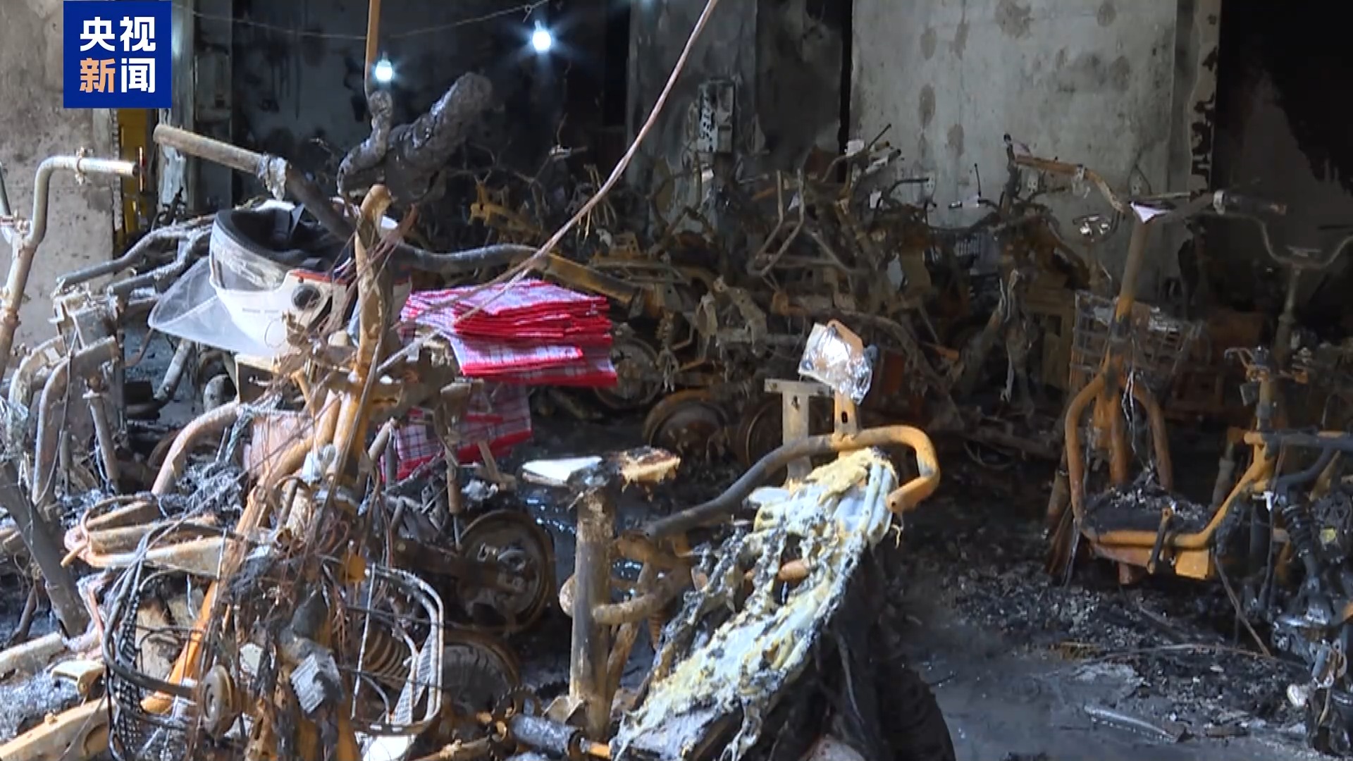 江苏省消防救援总队高级工程师崔蔚:当天晚上充电,但是事发的时候已经充满了,这样一个时间段的电量,能量是最大的。凌晨四点发生火灾的时候,它的威力也是非常大的,锂电池燃烧的时候,释放电解液的可燃气体,是一个爆燃的现象,迅速使周围的电动车燃烧。